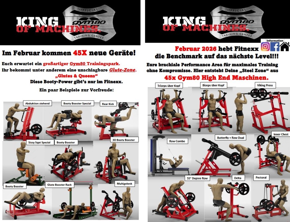 Fitnexx bietet zahlreiche Trainingsmöglichkeiten für ihr Herz und ihre Muskulatur. Wenn Sie diese nutzen, schaffen Sie sich selbst die beste Grundlage für Ihre Gesundheit und einen optimalen Fitness-Lifestyle. Unsere Mitglieder erhalten hierzu maßgeschneiderte Trainingspläne, die darauf ausgerichtet sind, dass Sie Ihre persönlichen Ziele erreichen oder Ihre vermeintlichen Schwächen in Stärken verwandeln. Geben Sie sich einen Ruck und greifen Sie es an!